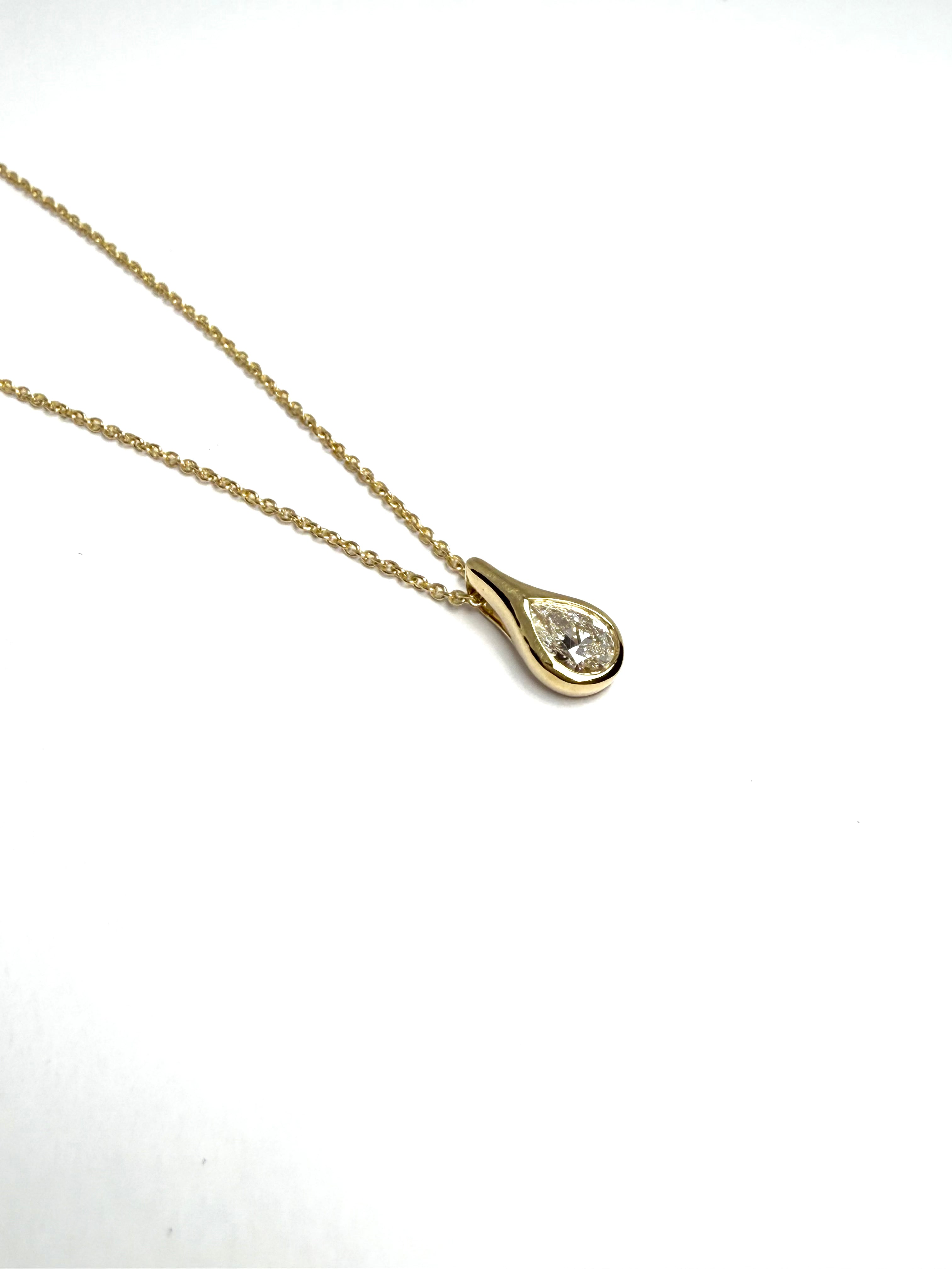18CT YELLOW GOLD PEAR SHAPE DIAMOND IN A BEZEL SETTING