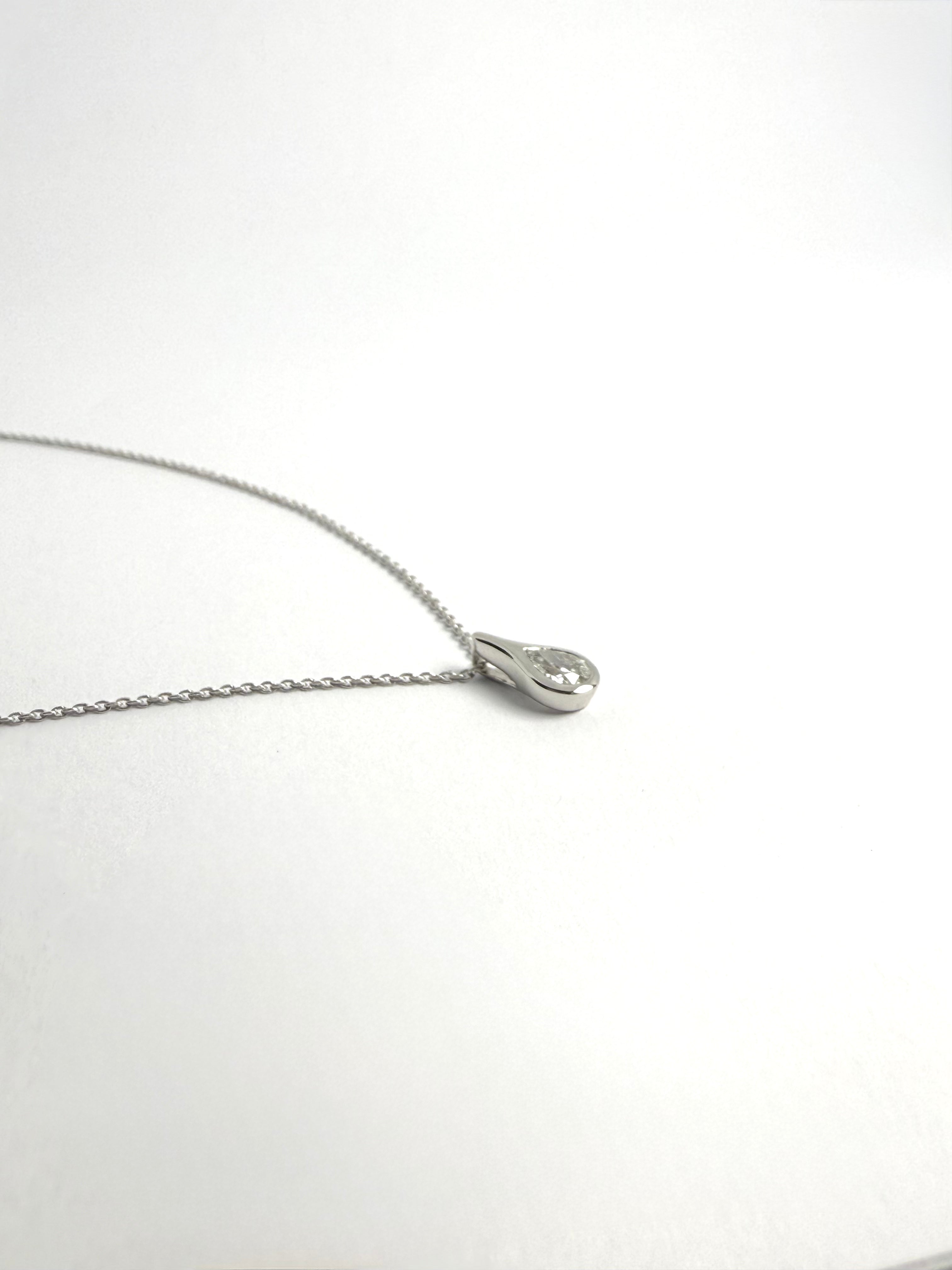 18CT WHITE GOLD PEAR SHAPE DIAMOND IN A BEZEL SETTING