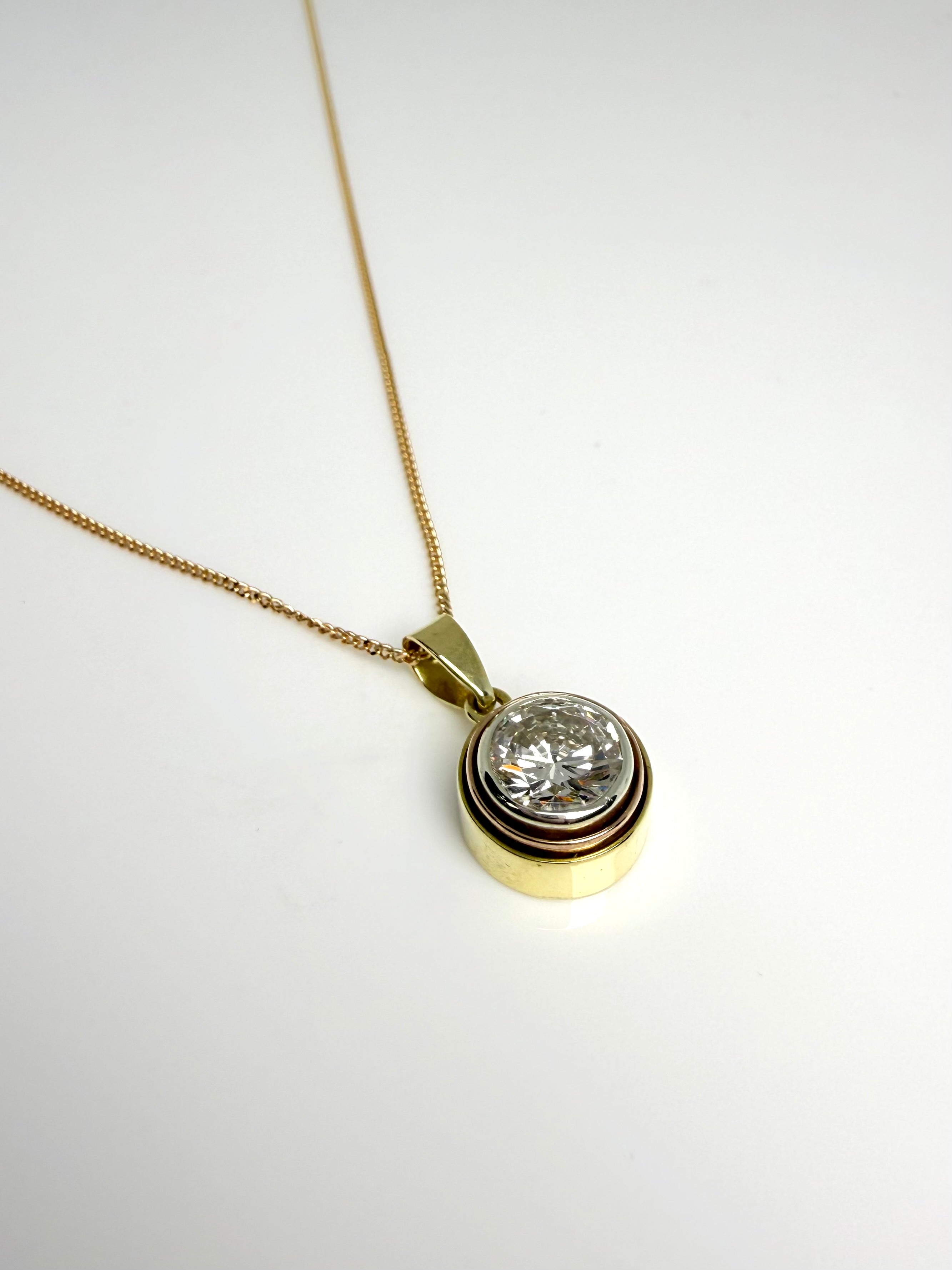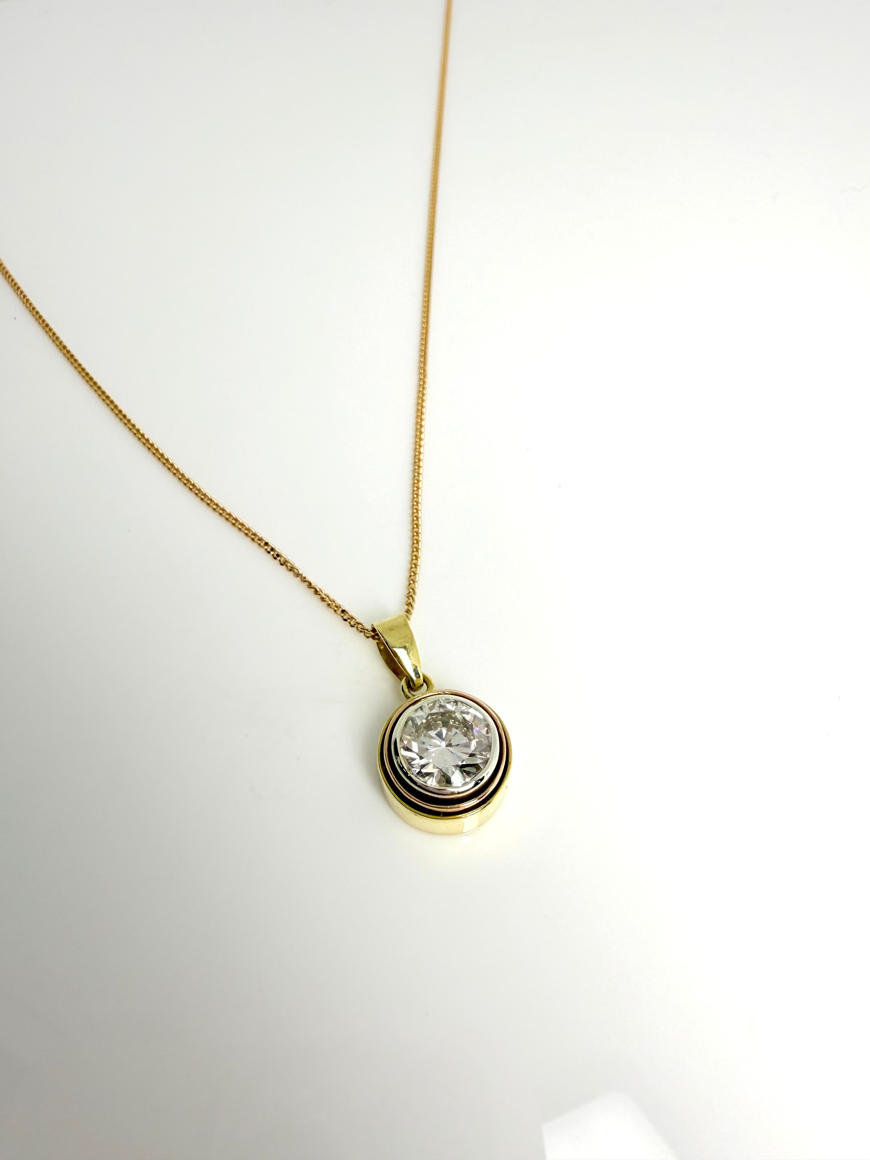 18CT BEZEL SET 2.03CT MODERN BRILLIANT CUT DIAMOND PENDANT
