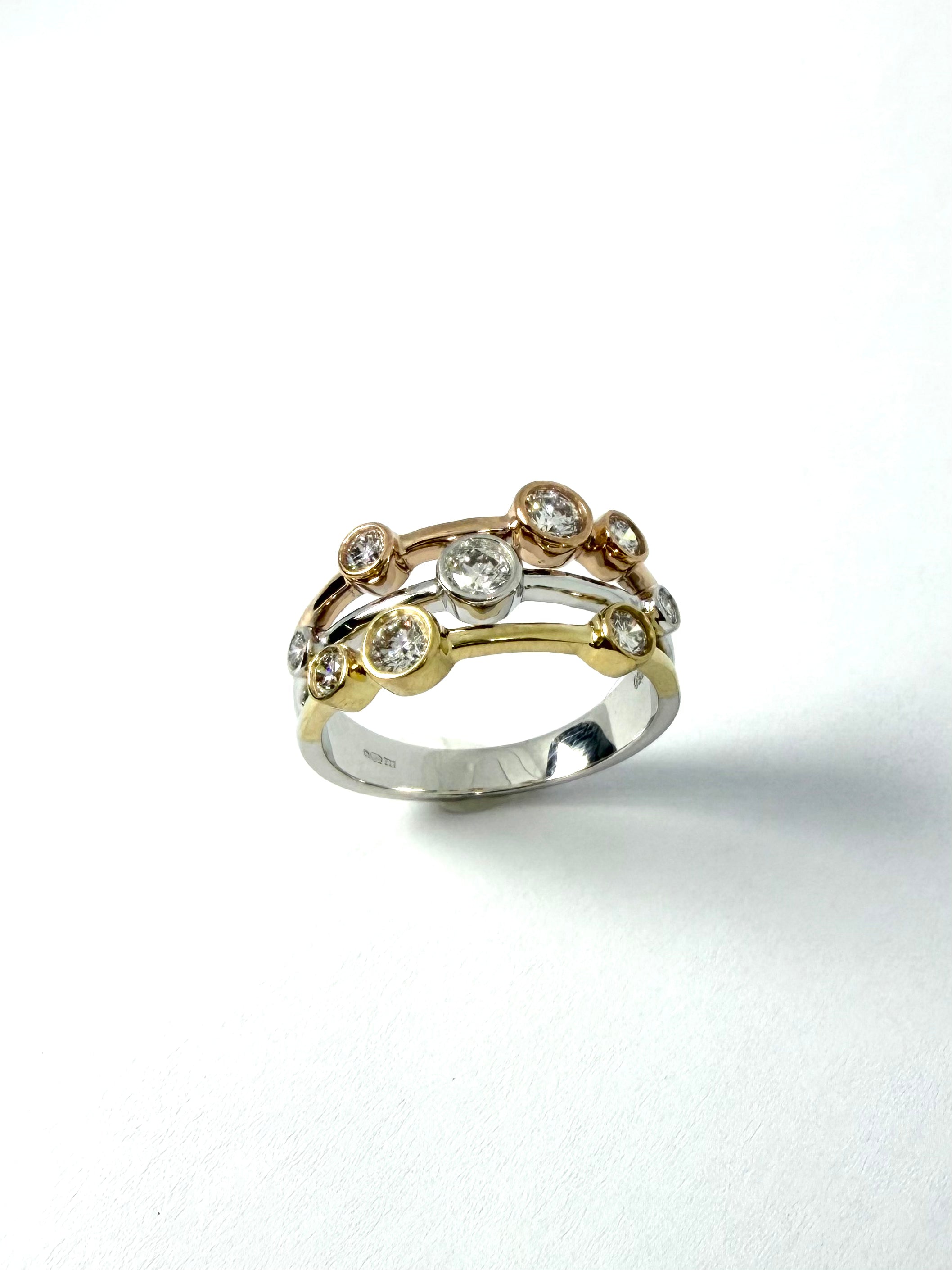 THIS RAIN-DANCE RING IS MADE UP OF WHITE YELLOW AND ROSE GOLD