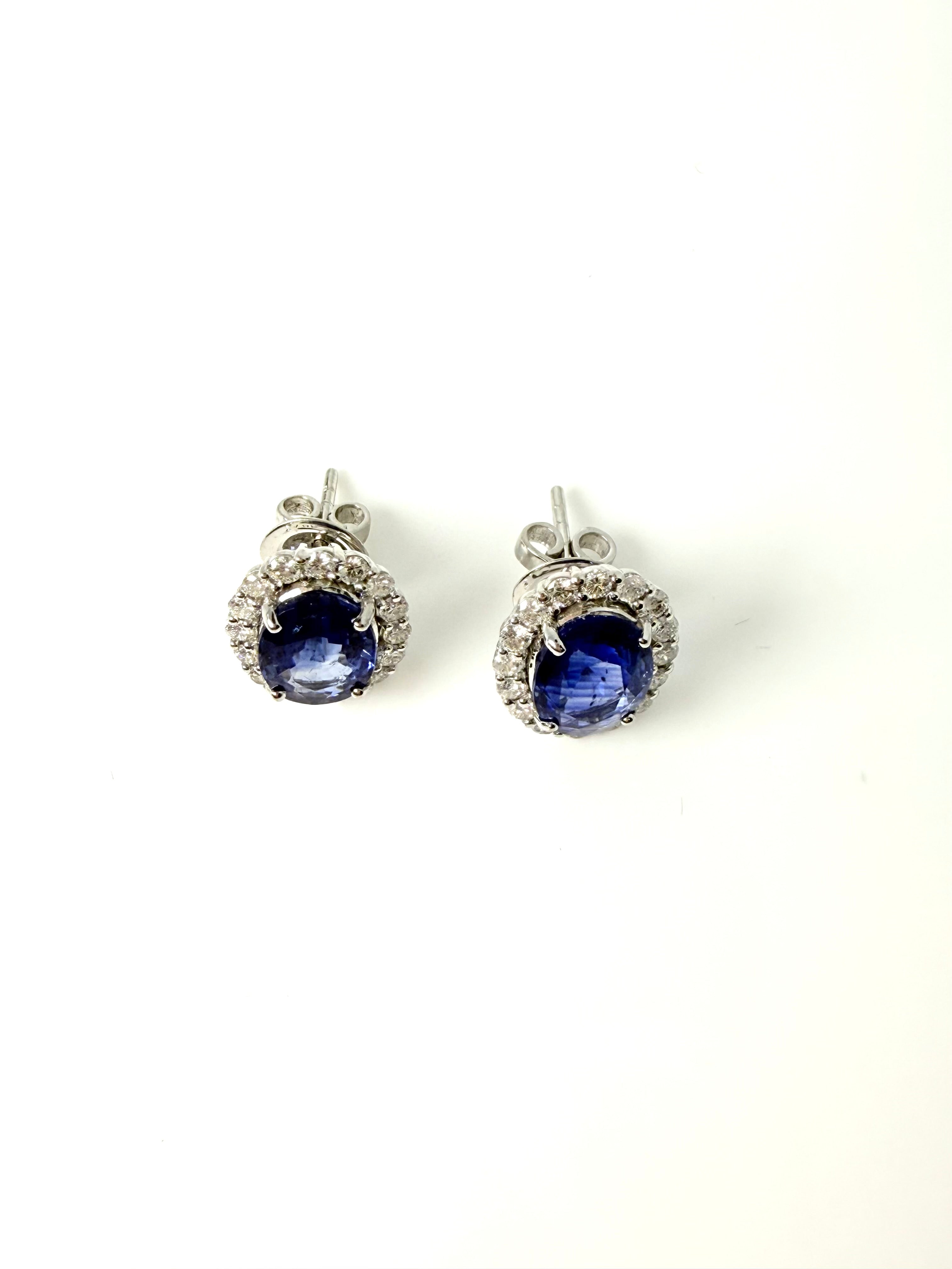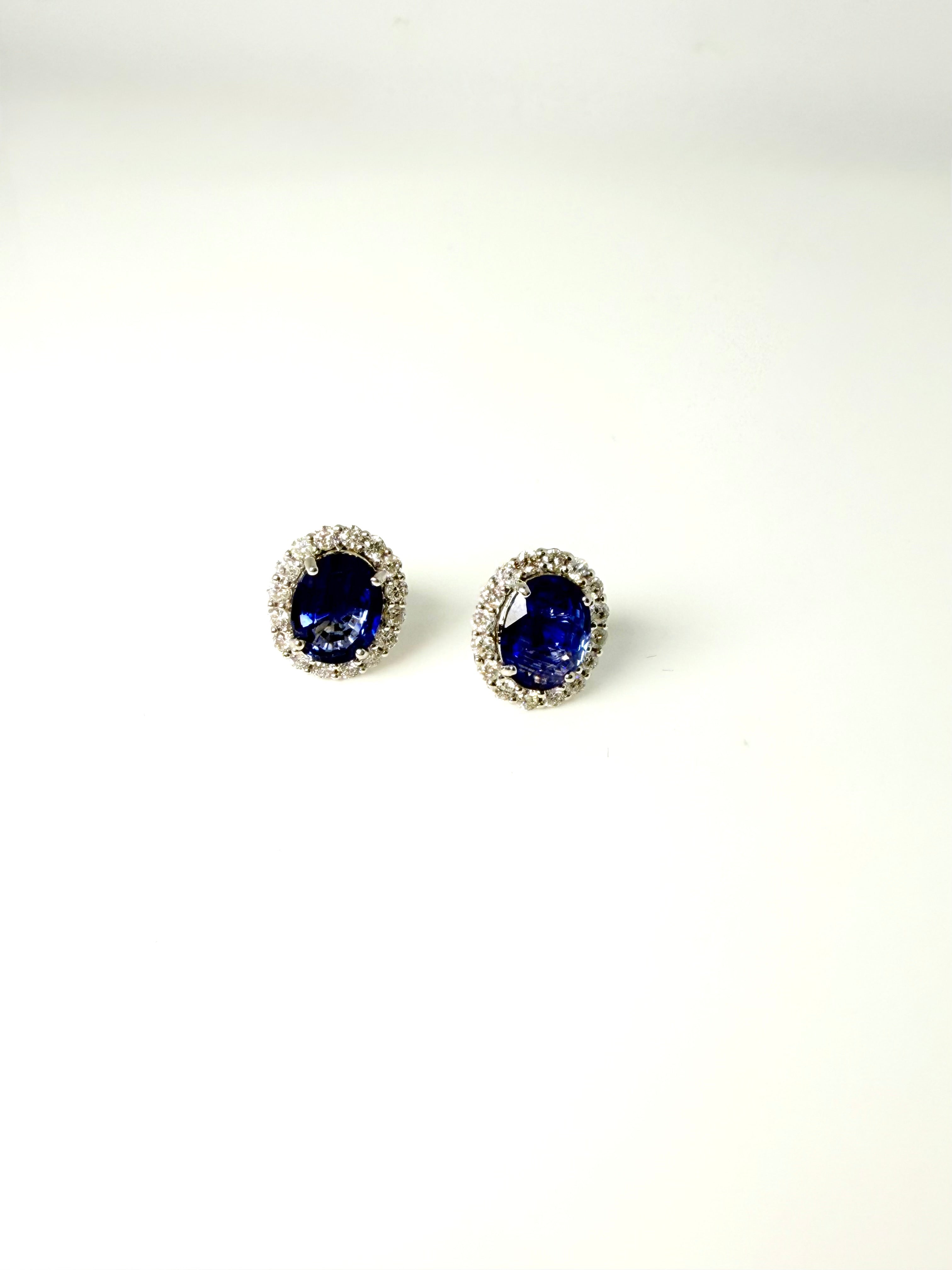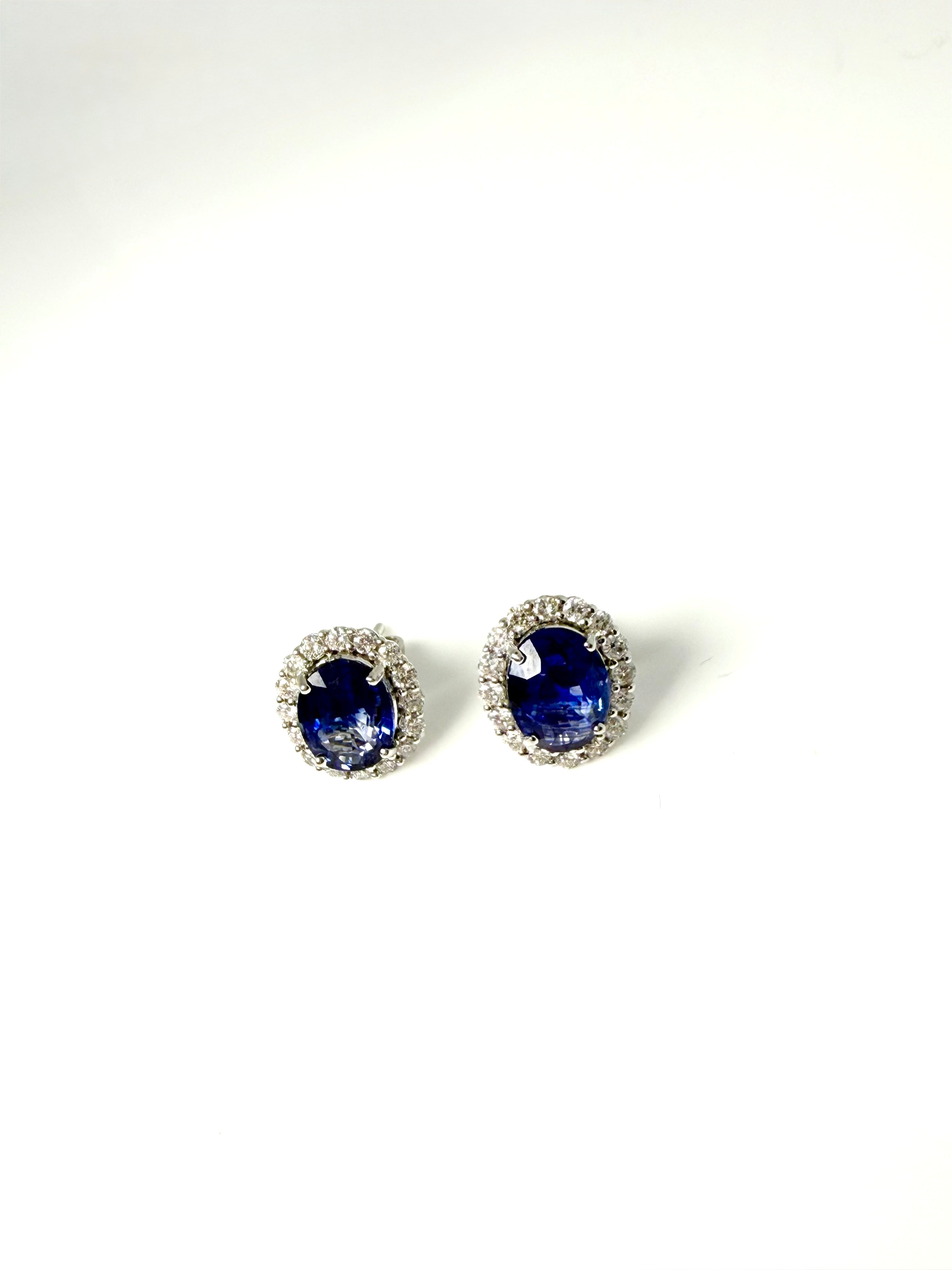 A LOVELY MATCHING PAIR OF ROYAL BLUE OVAL SAPPHIRES SURROUNDED BY A HALO OF WHITE DIAMONDS