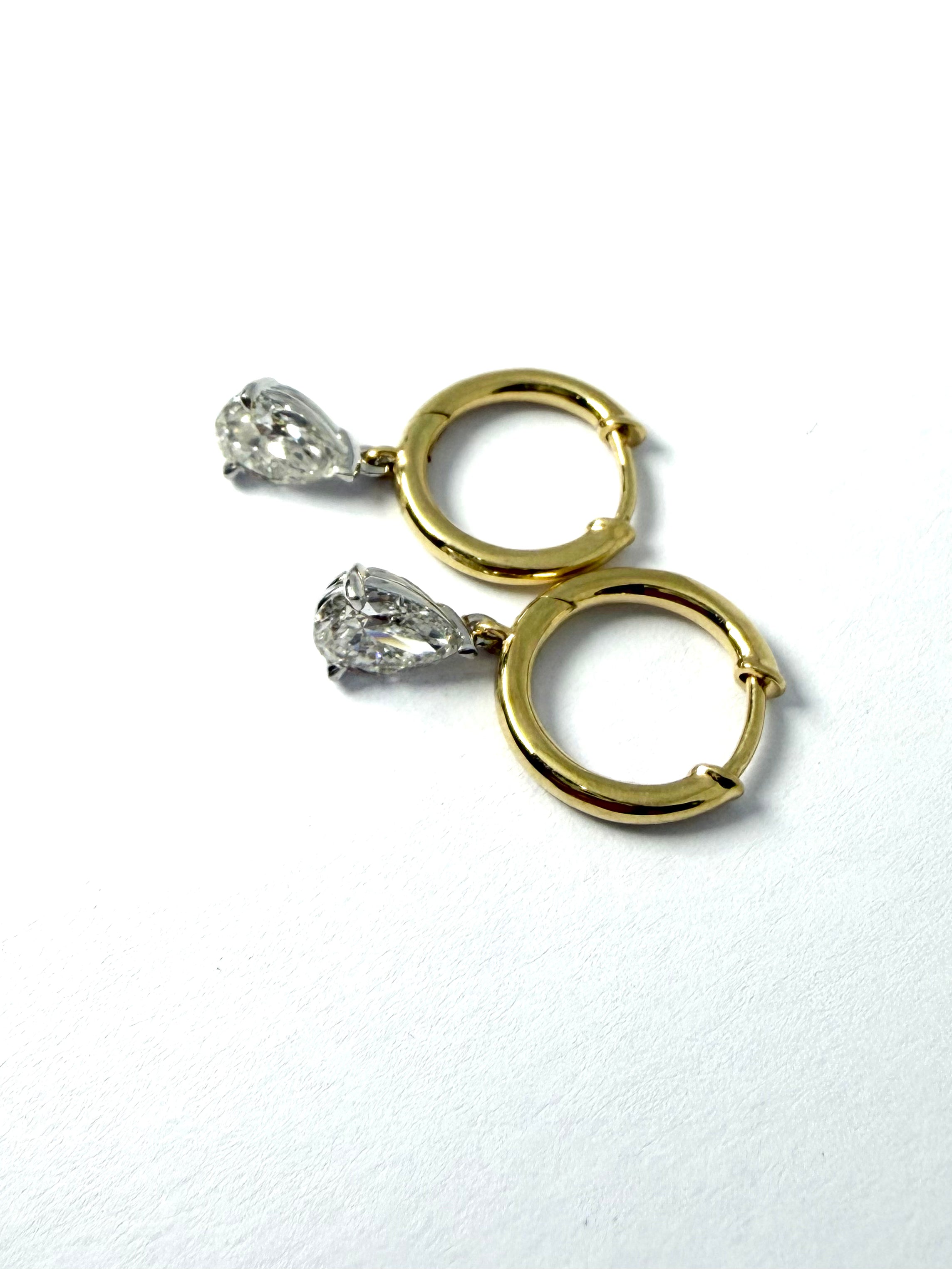 ICT IN EACH EARRING PEAR SHAPED LAB DIAMOND WITH 18CT YELLOW GOLD HUGGIES