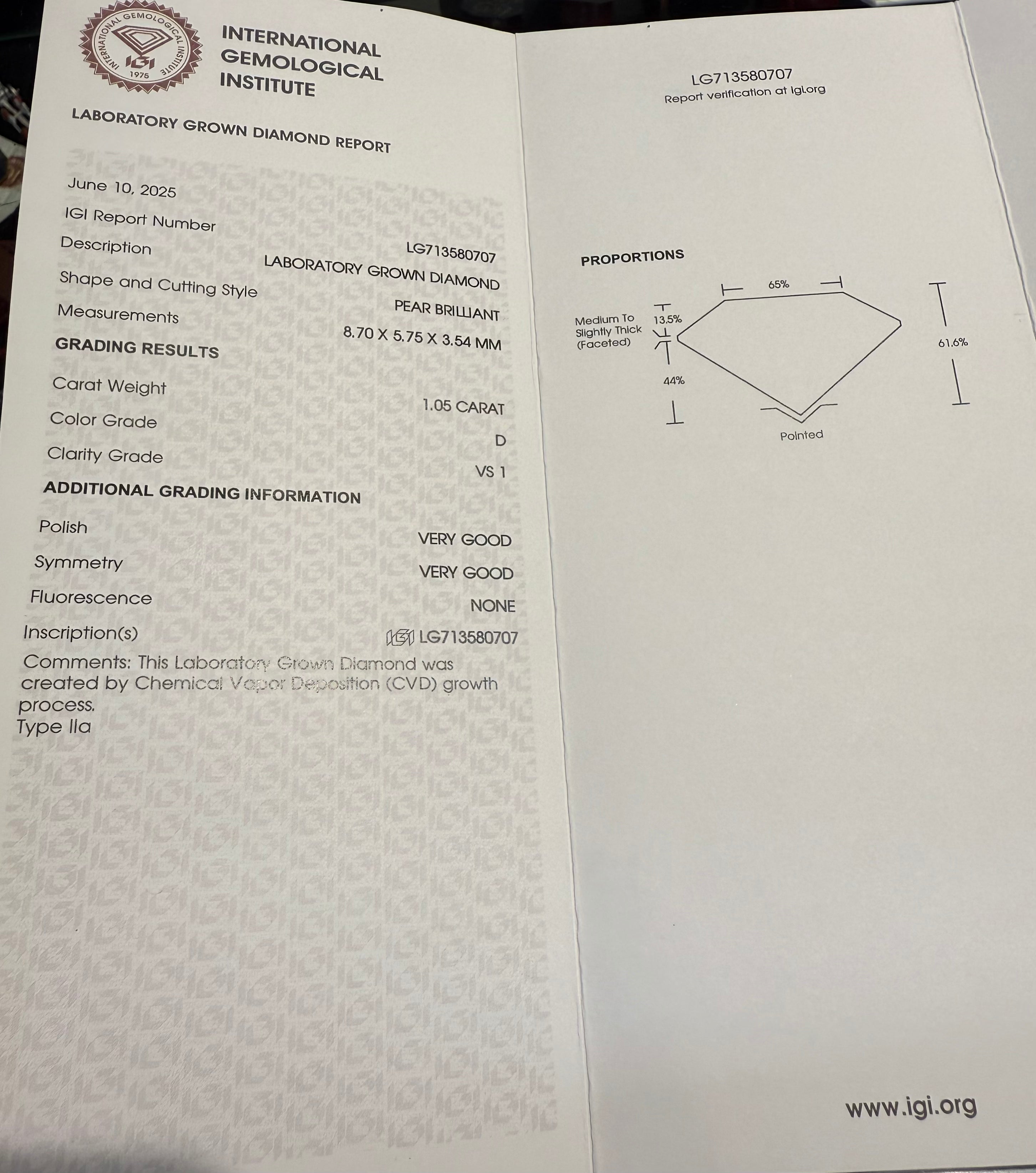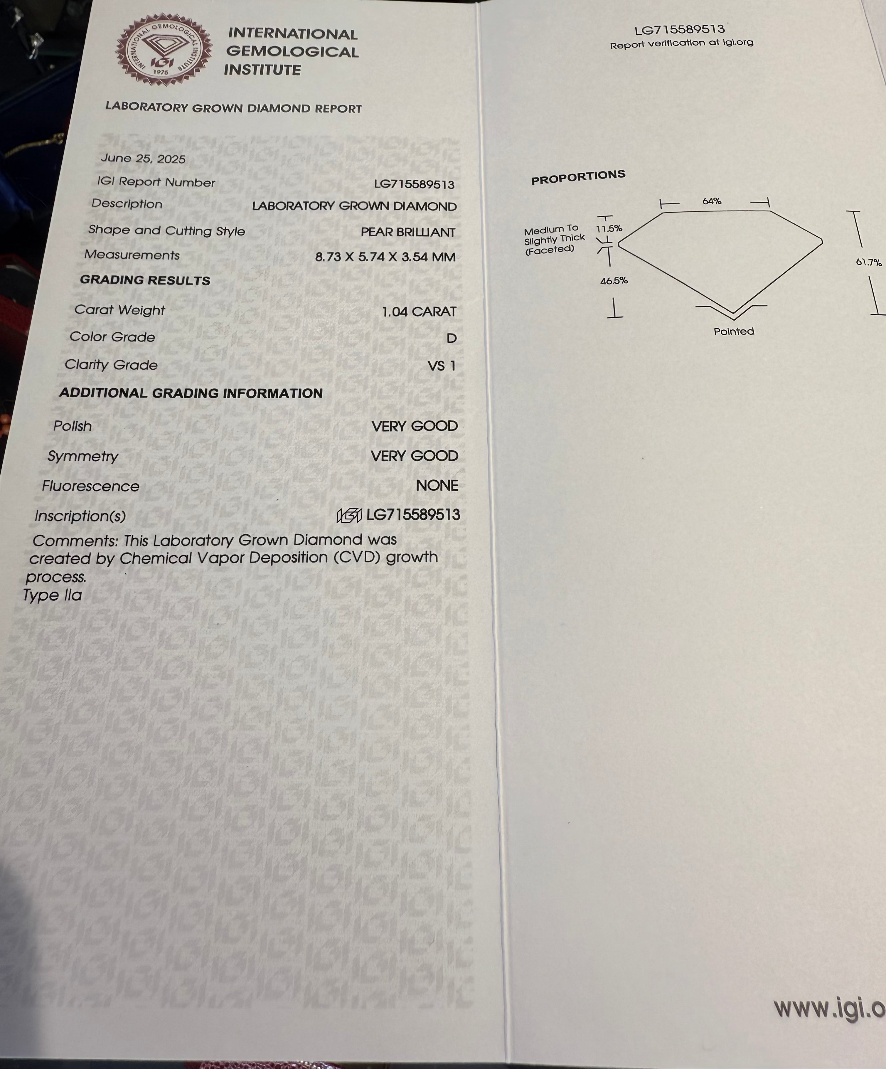 CERTIFIED D COLOUR VS1 CLARITY