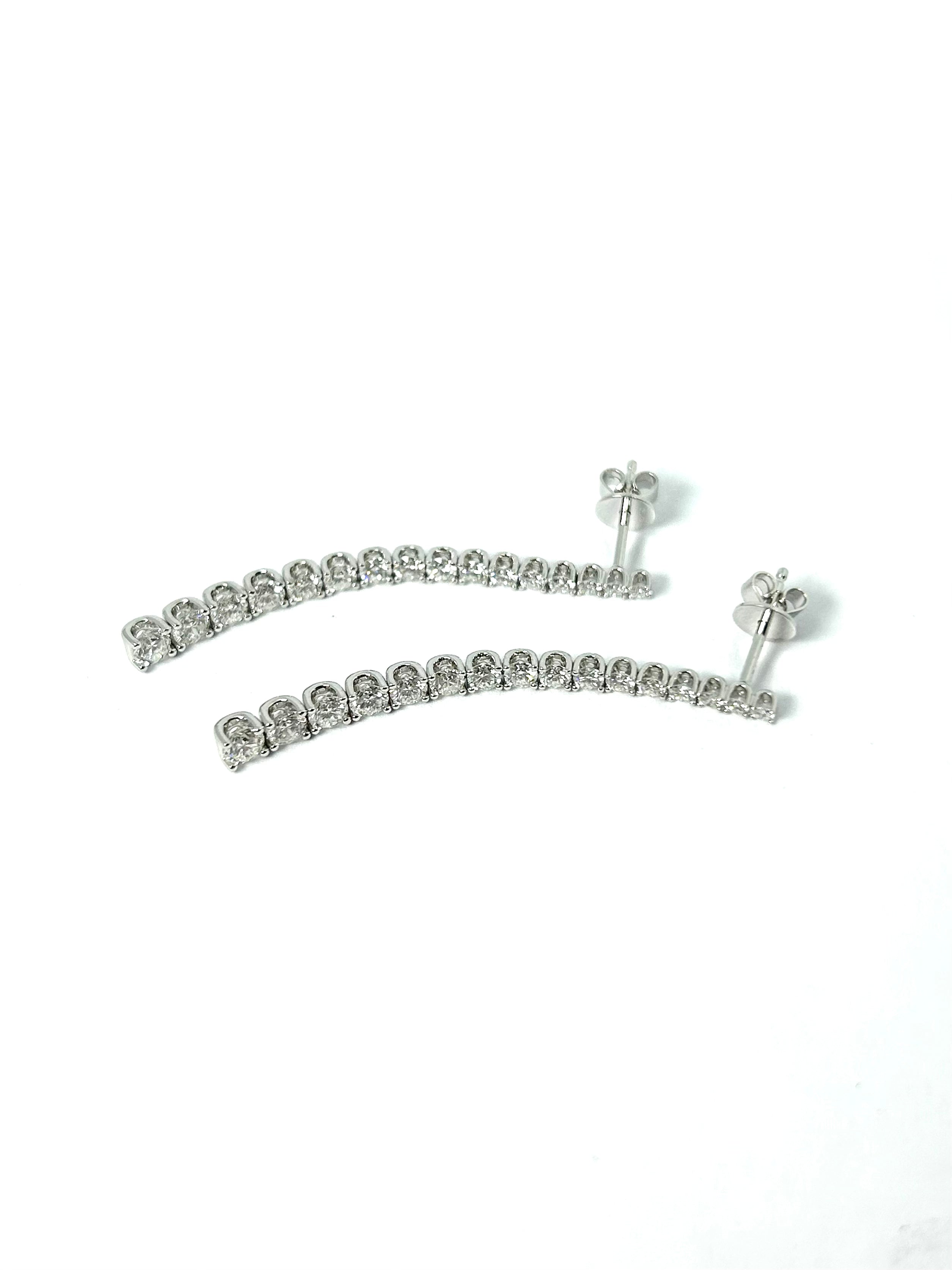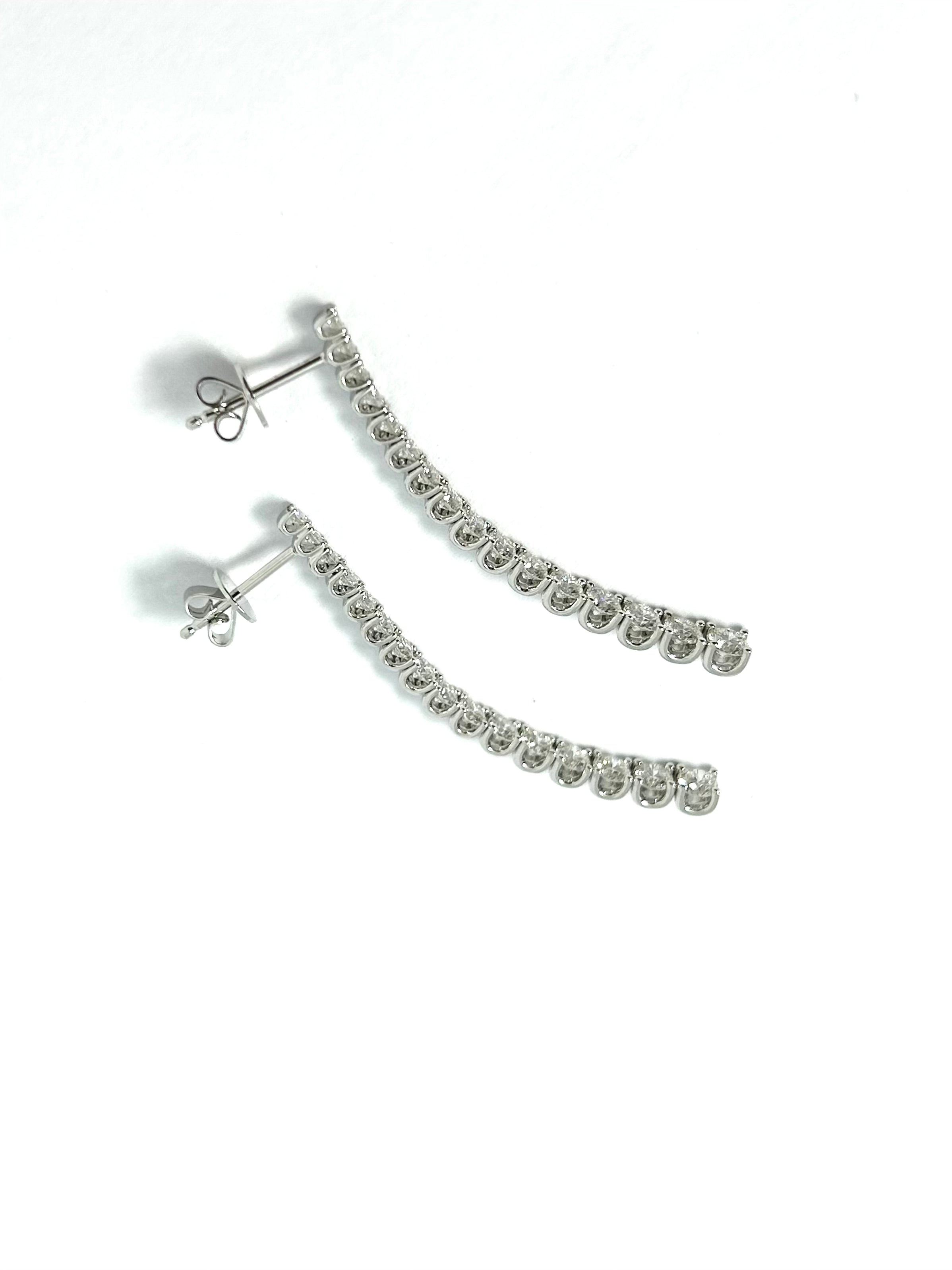 HERE WE HAVE GRADUATING ROUND BRILLIANT CUT DIAMOND DROPPER EARRINGS SET IN 18CT WHITE GOLD