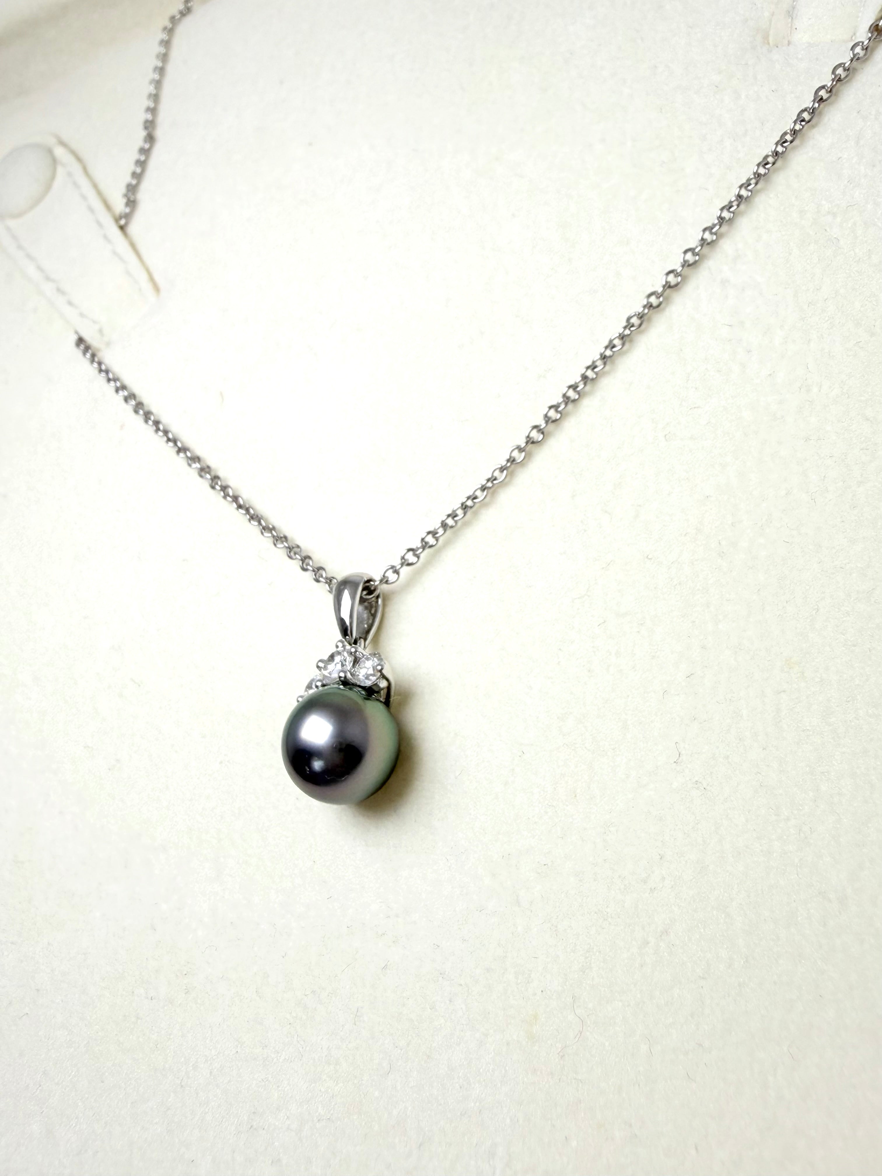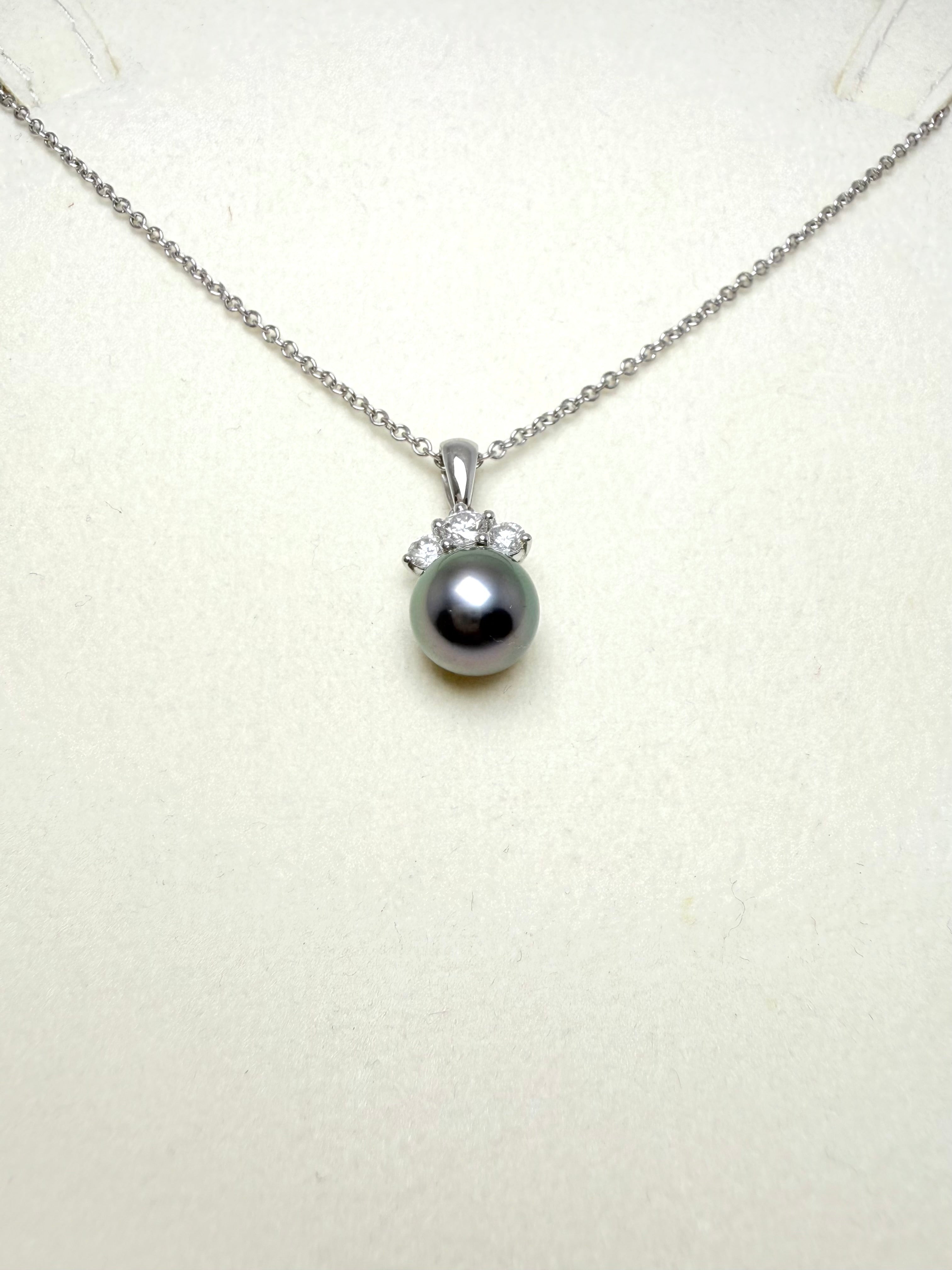 18CT WHITE GOLD MIKI-MOTO PEARL PENDANT WITH DIAMONDS