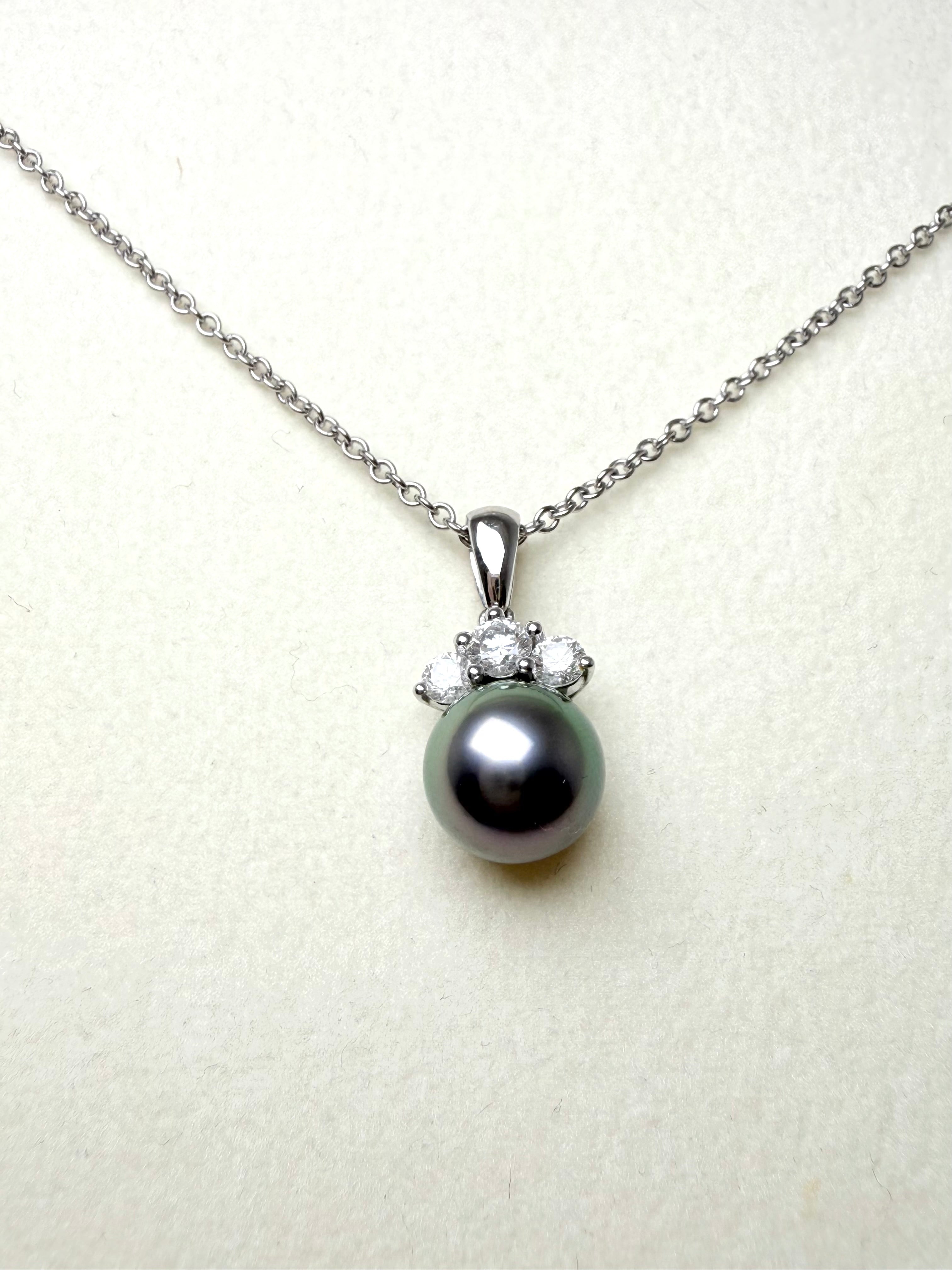 A GREY CULTURED PEARL WITH 3 DIAMONDS SET IN A ROW