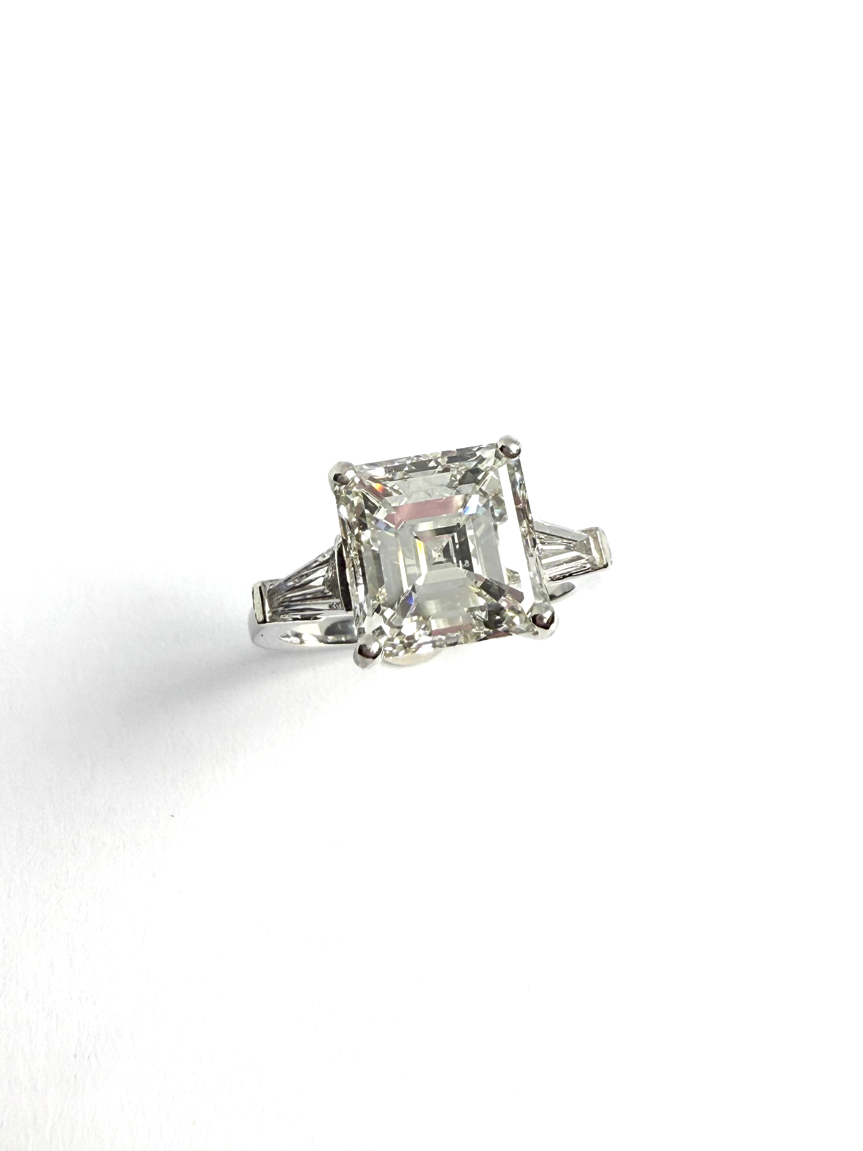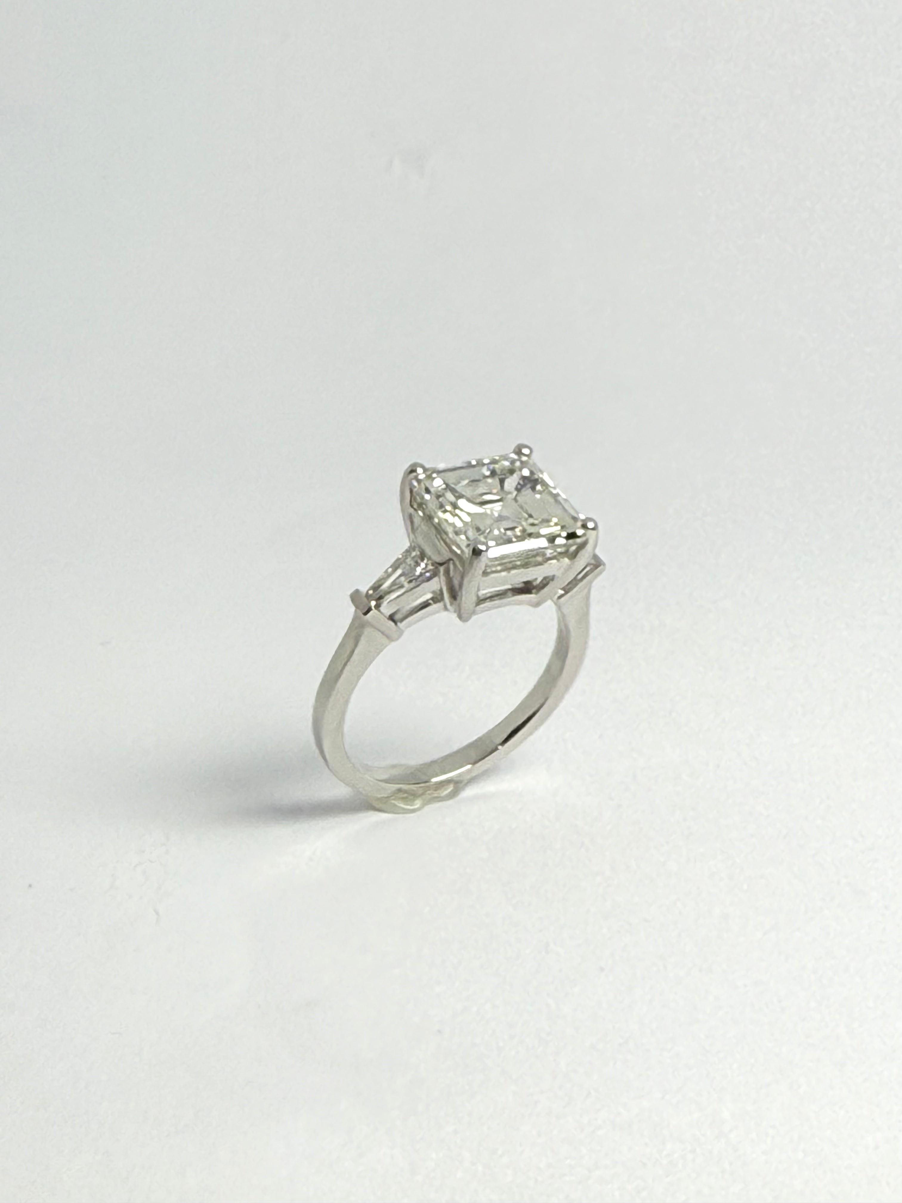 4.70CT ASSCHER CUT DIAMOND CENTRE AND 50PT TAPERED BAGUETTE DIAMOND SHOULDERS