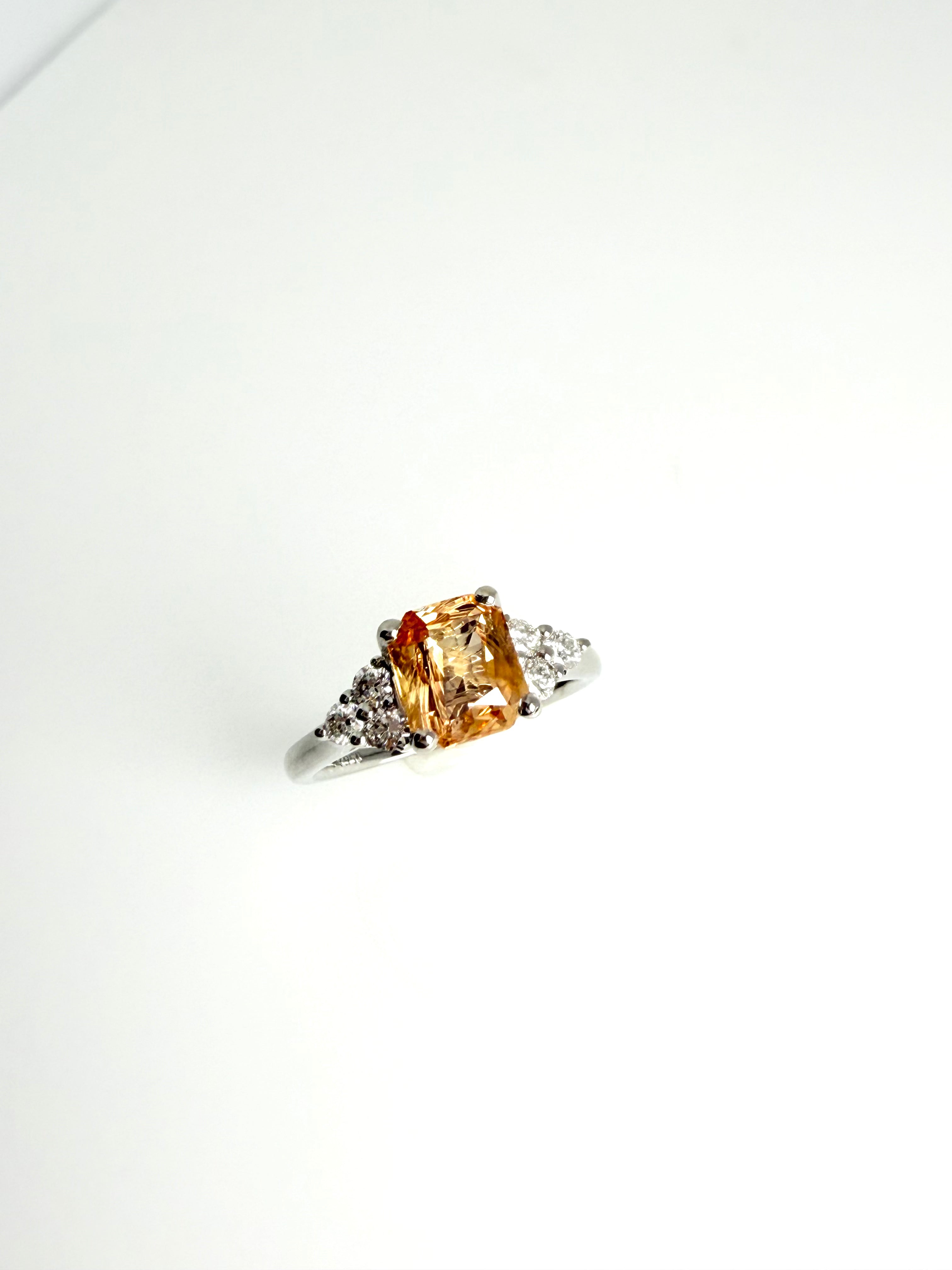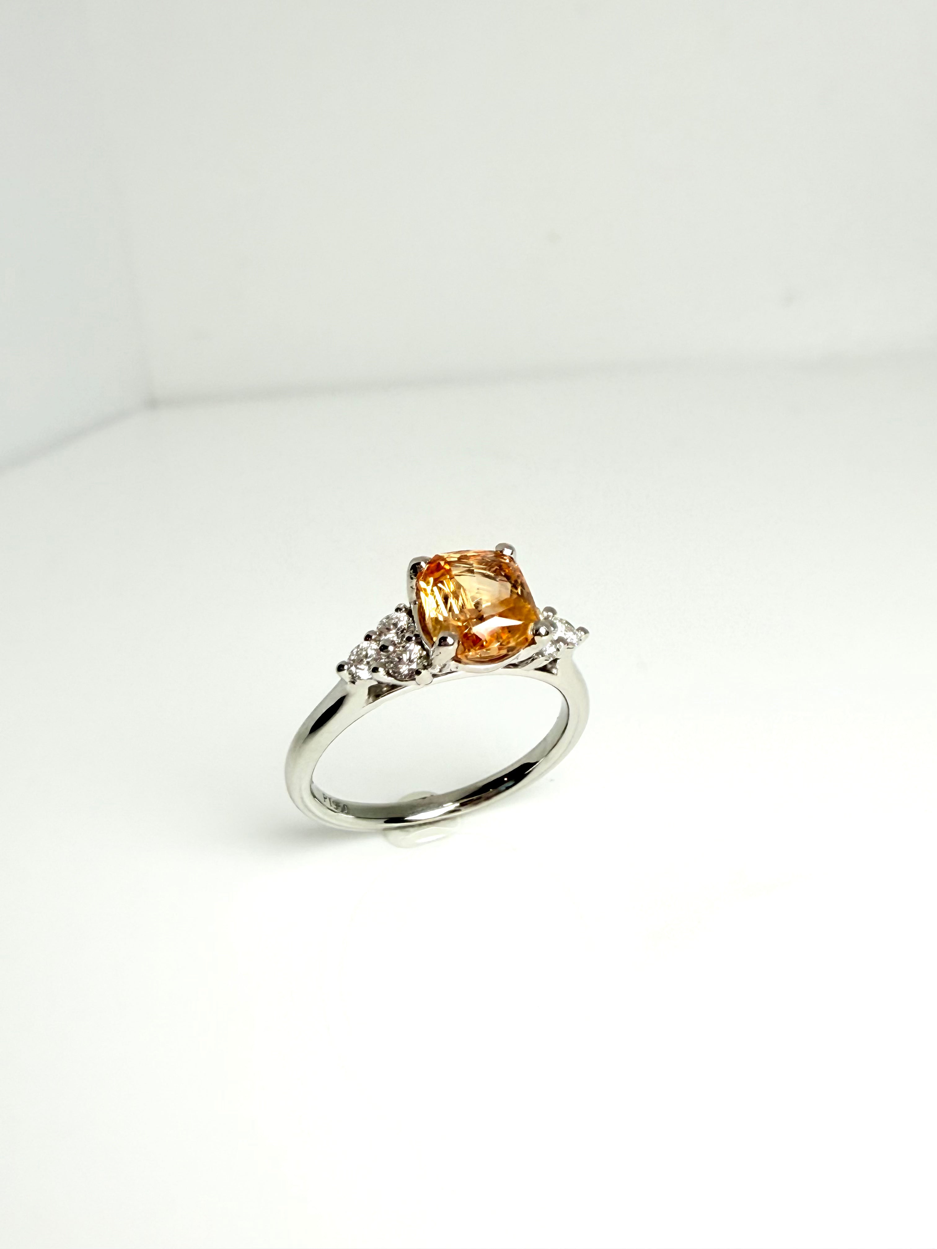 PLATINUM 1.30CT PEACH SAPPHIRE WITH DIAMOND SHOULDERS