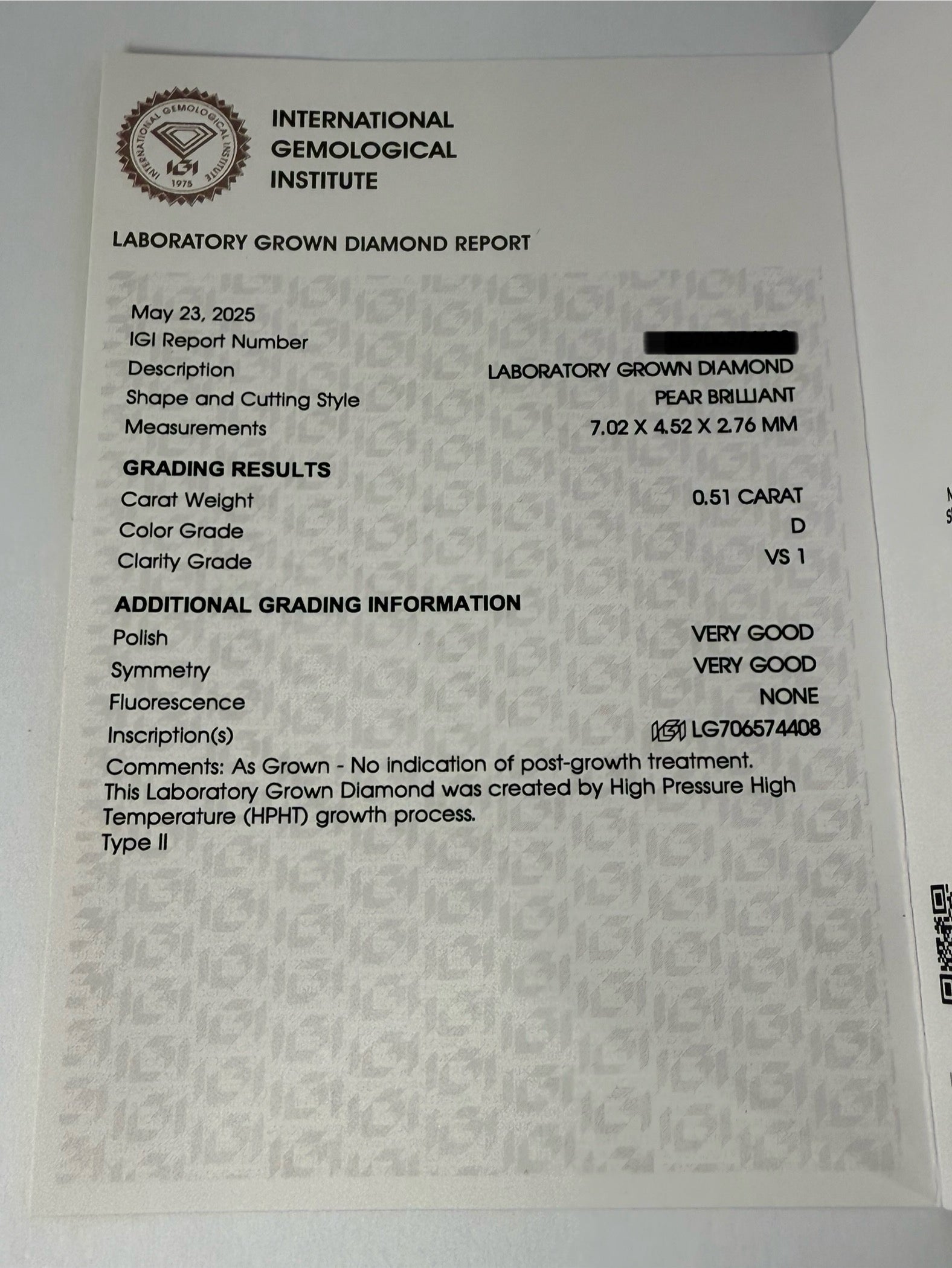 LOVELY BRIGHT WHITE LAB GROWN CERTIFIED PEAR SHAPED DIAMOND DROPS