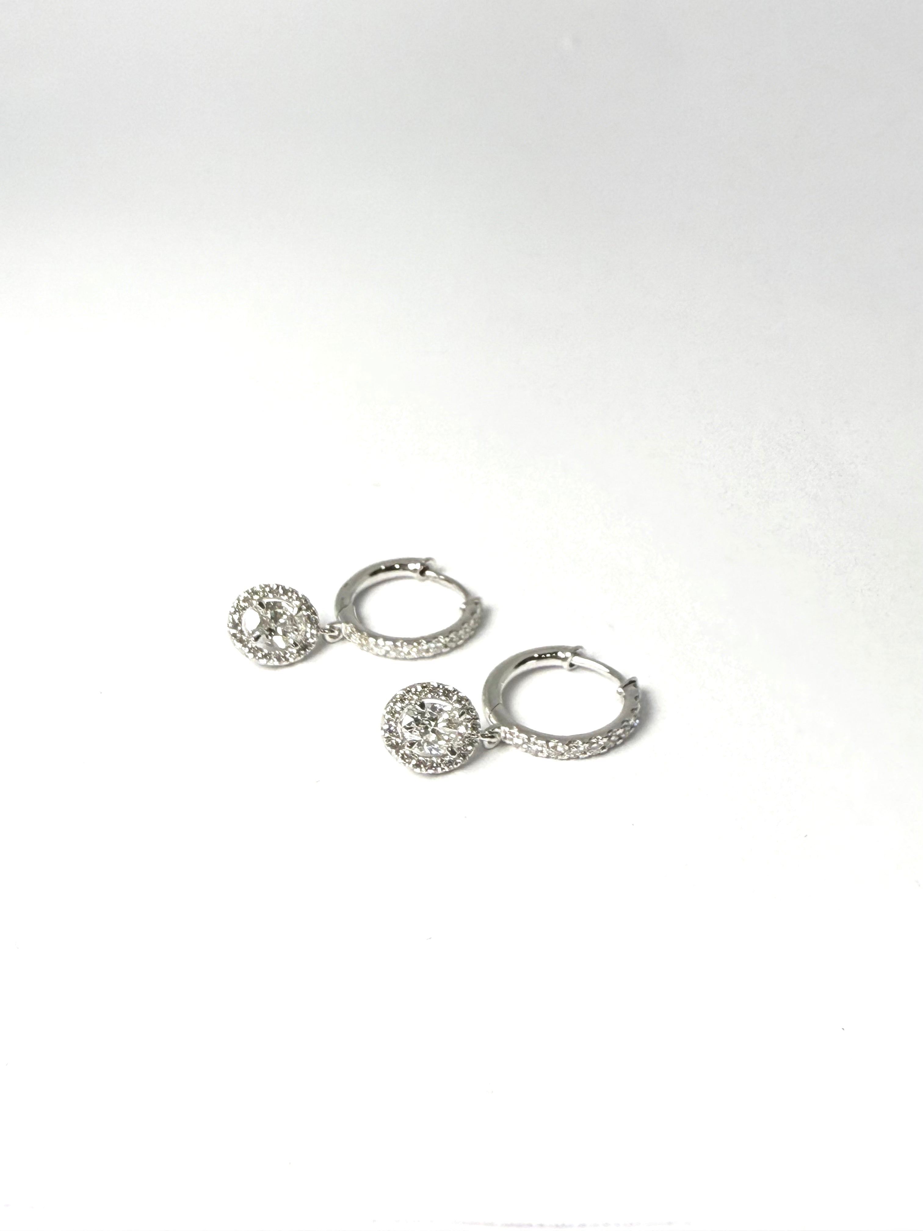 18CT 1.04CT OVAL HALO DIAMOND DROP HUGGIES
