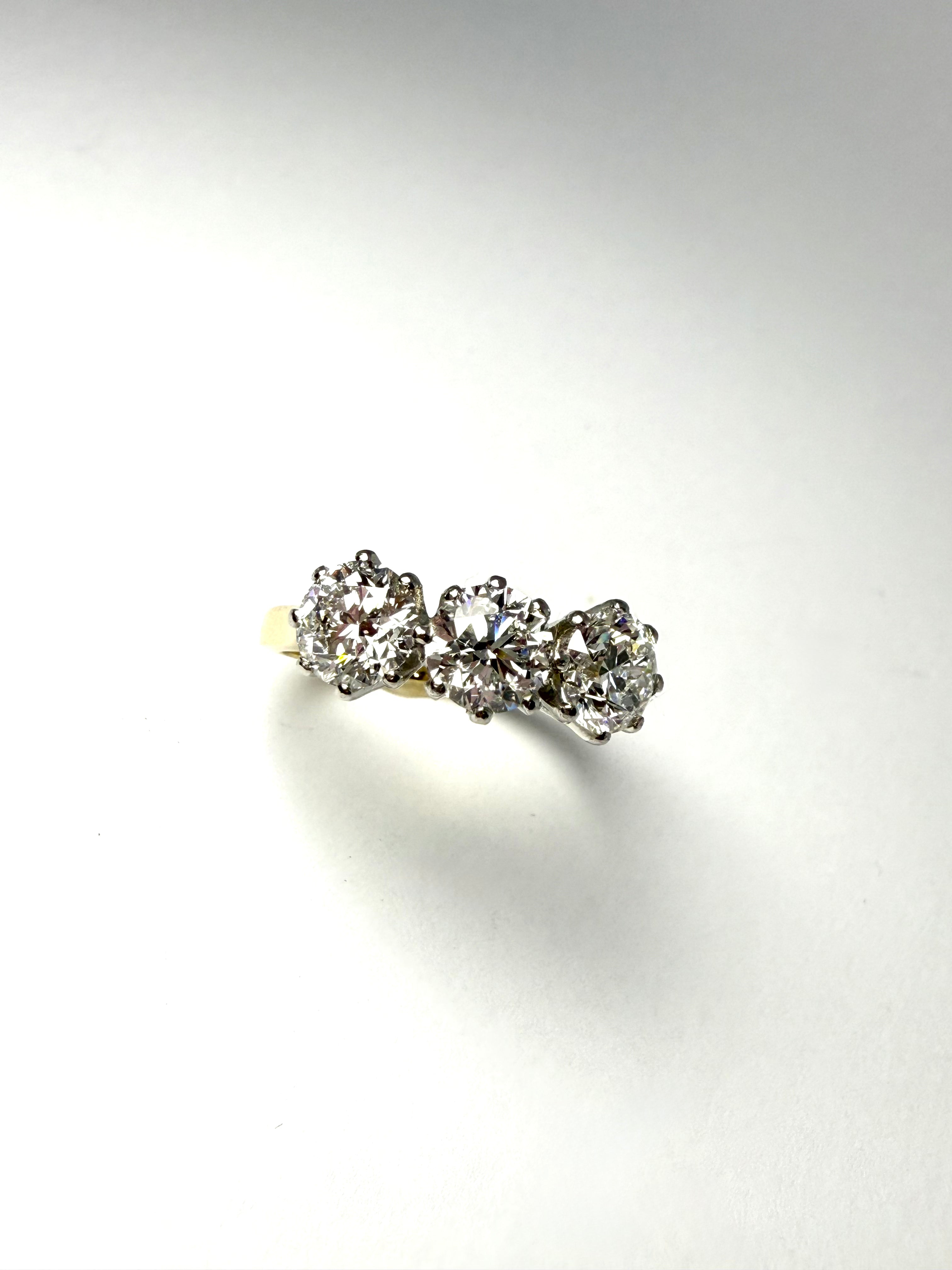 A BREATHTAKING TRILOGY RING WITH 3 BEAUTIFUL WHITE ROUND BRILLIANT CUT DIAMONDS