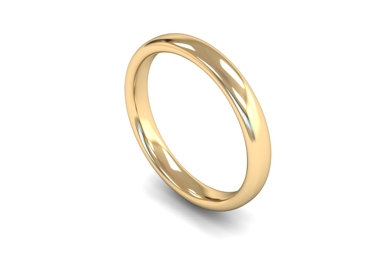 Luxury range 3mm Traditonal Court shape wedding band 18ct Yellow Gold approx 4gms. Sizes H to Z+1. Also available in 18ct Rose gold and 18ct White gold.