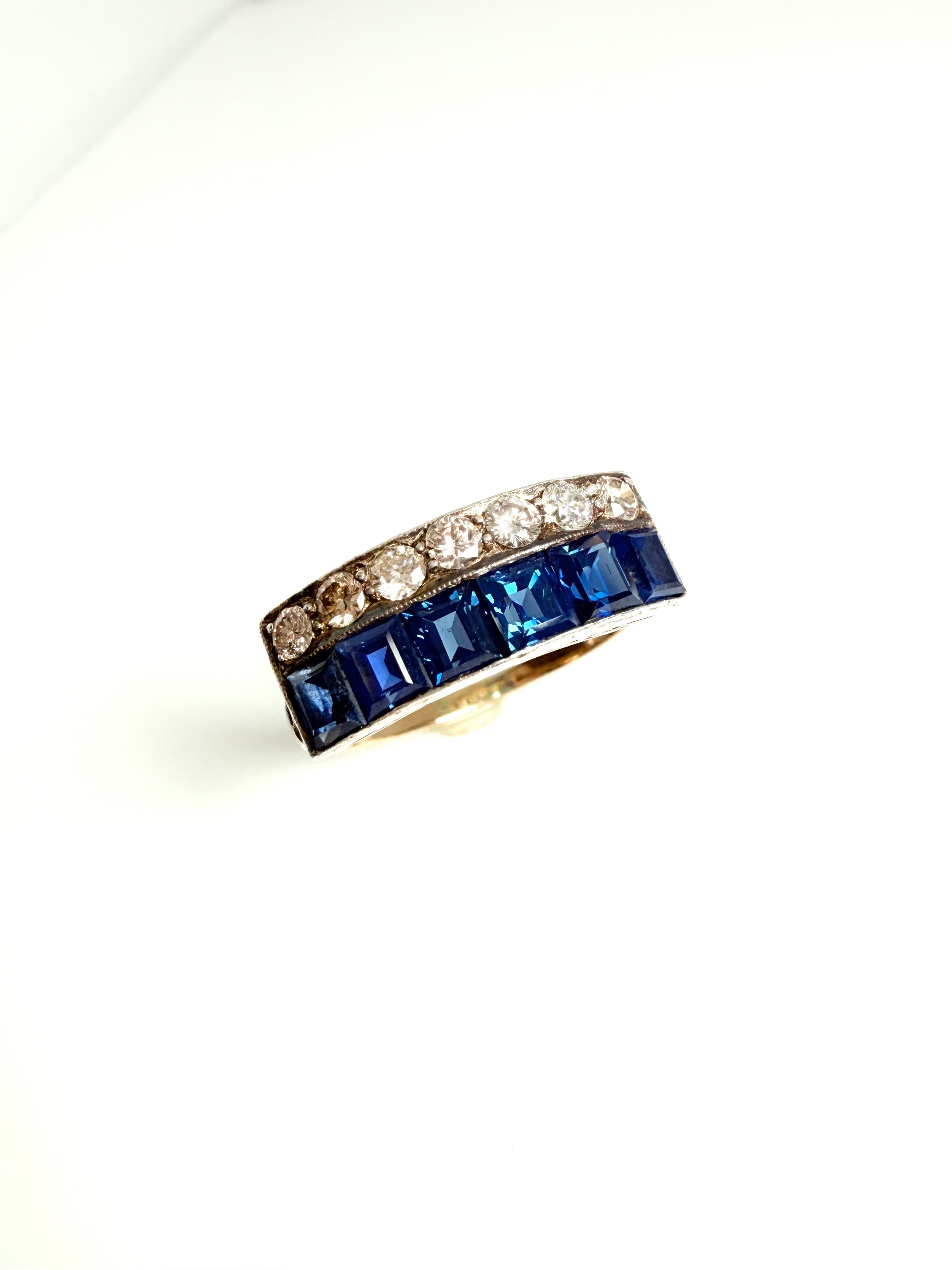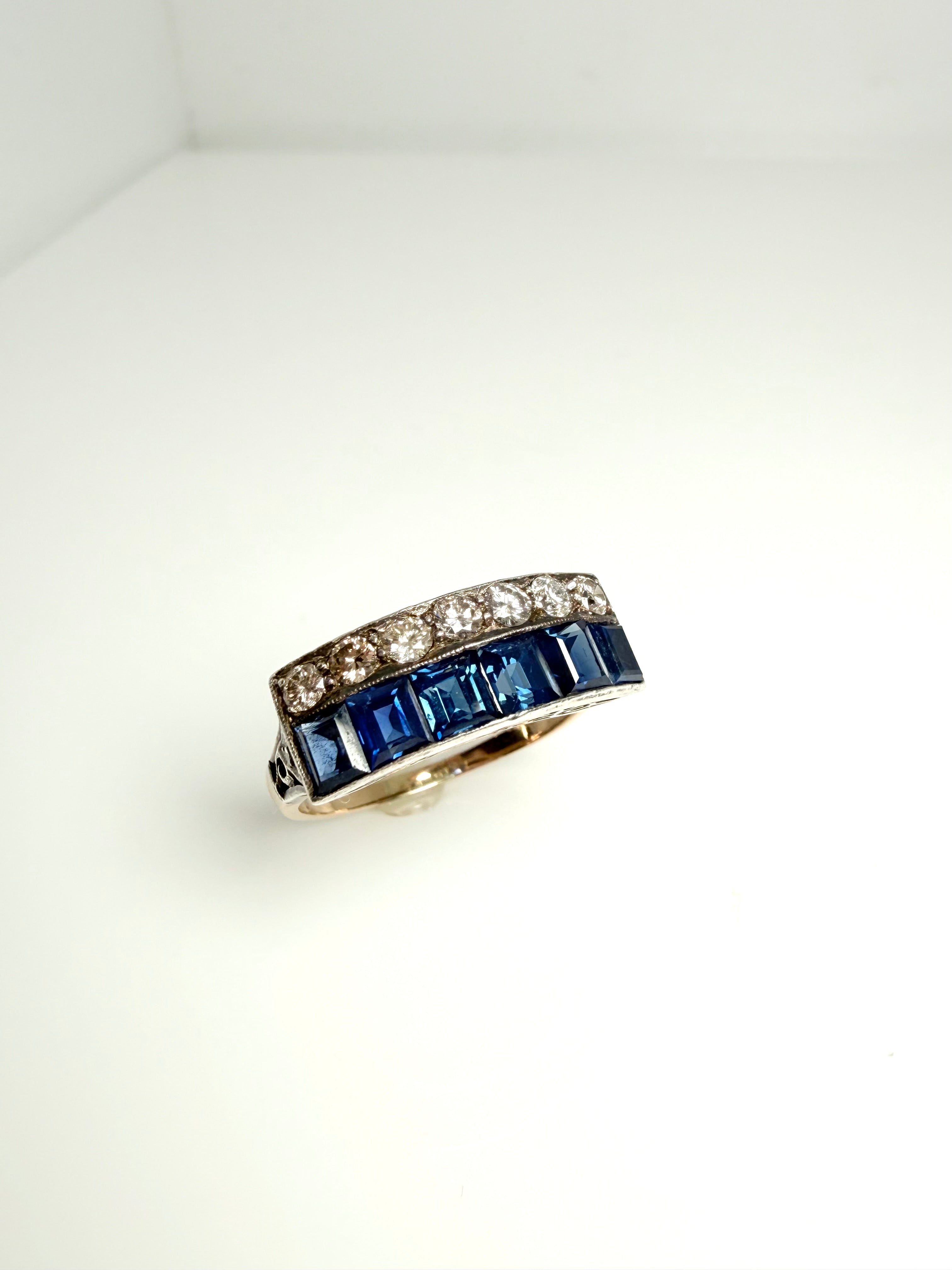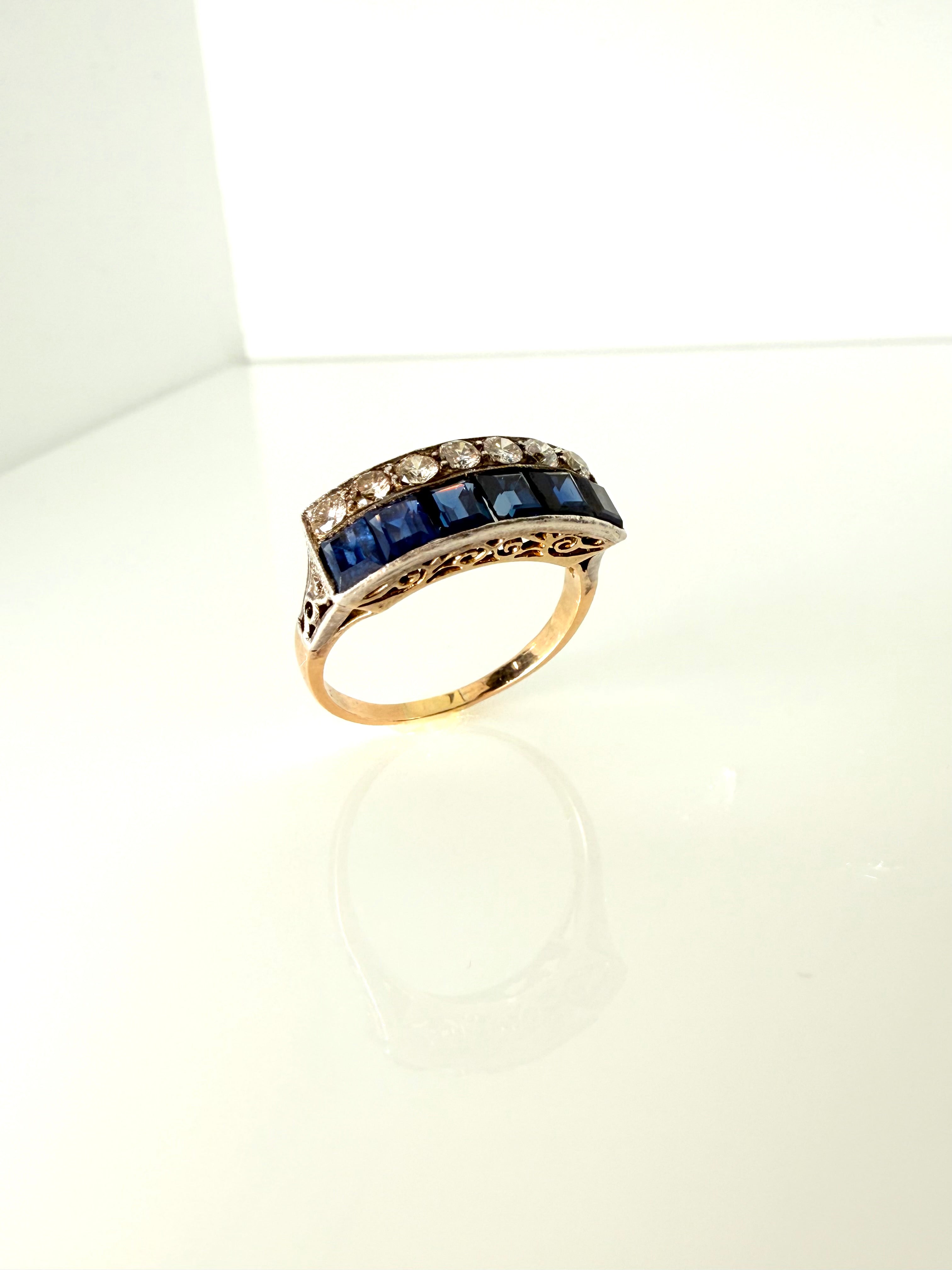 A LOVELY VINTAGE SAPPHIRE AND DIAMOND RING