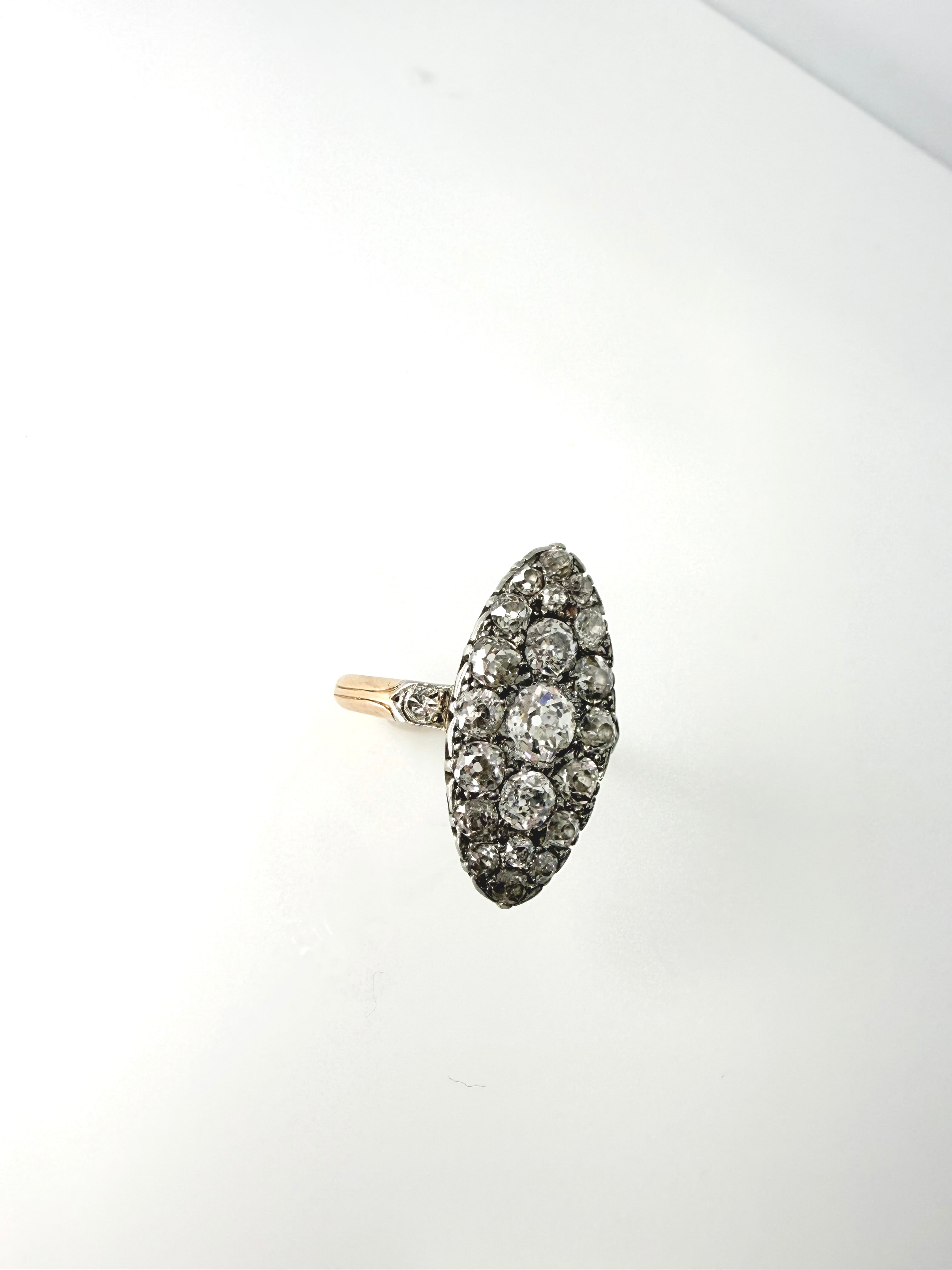 EDWARDIAN OLD EUROPEAN CUT DIAMOND MARQUISE SHAPED RING