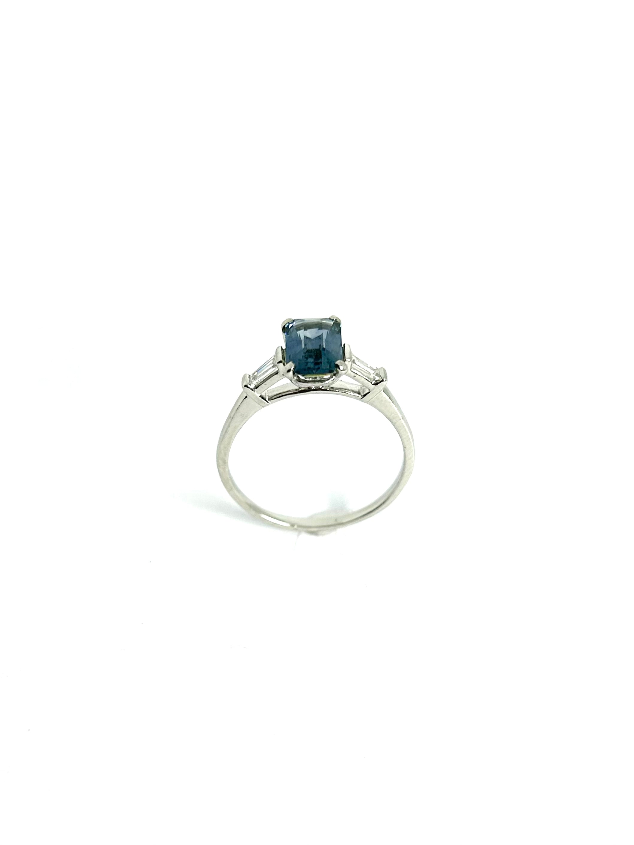 A GORGEOUS PRE-LOVED EMERALD CUT TEAL SAPPHIRE WITH TAPERED BAGUETTE DIAMONDS