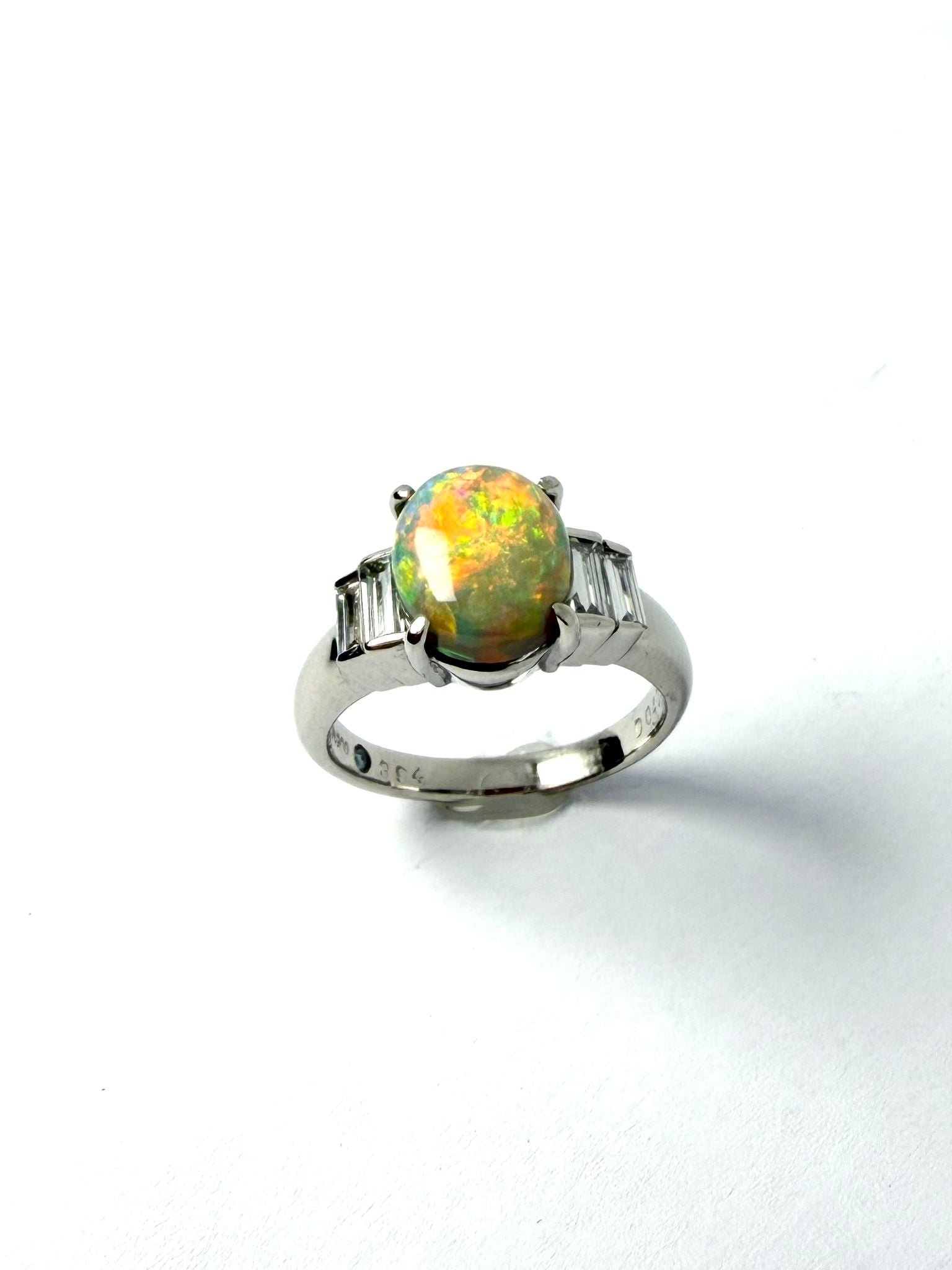 PLATINUM CRYSTAL OPAL AND DIAMOND RING