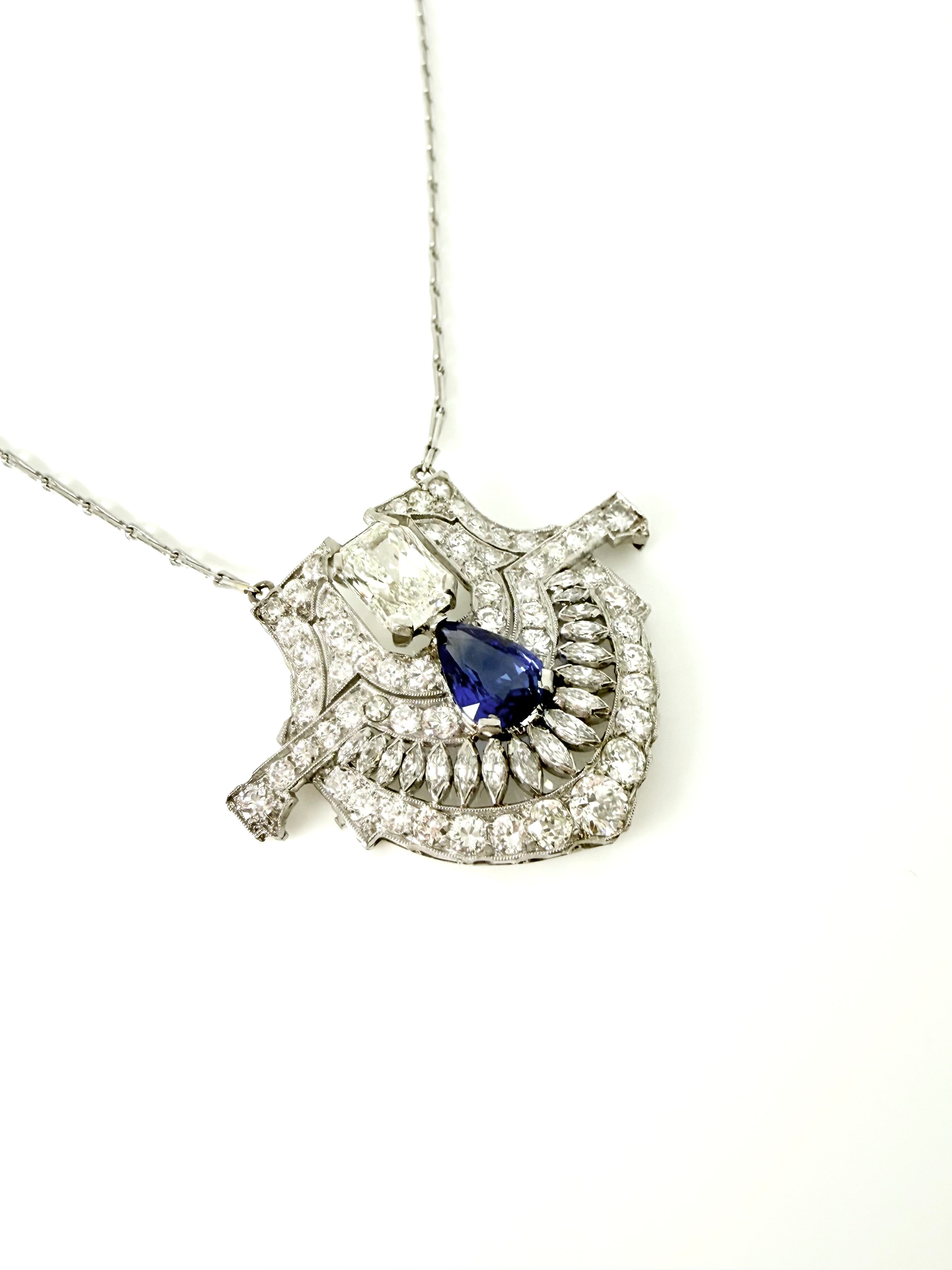 VINTAGE ART DECO SAPPHIRE AND DIAMOND ORNATE PENDANT